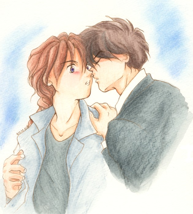 Another version of the kiss pic above. This was prompted by the sweet fic "Kiss" Fancyfigures wrote for me! (*^~^*) |