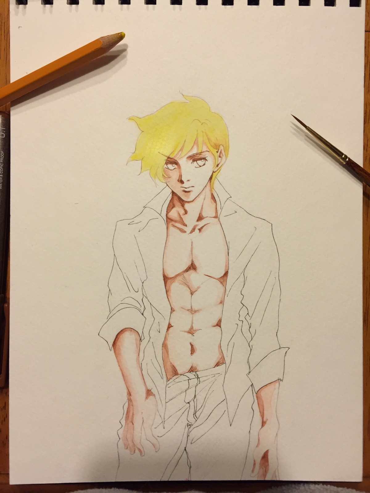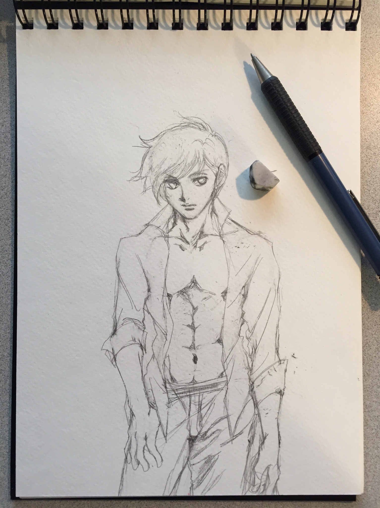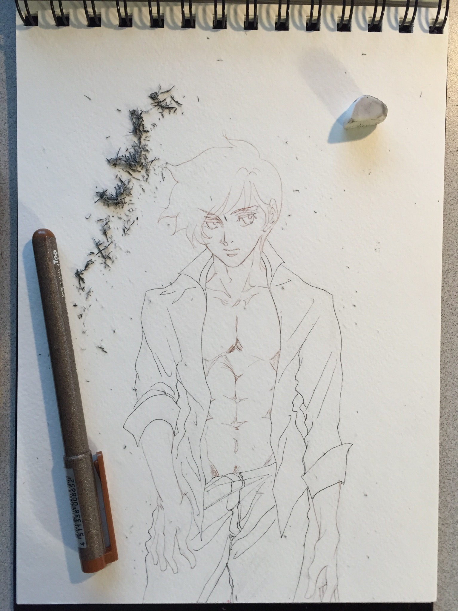 何度も何度も描き直した上どうしても直せず結局シャツで隠しました(ーー;)