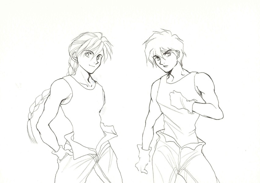 | Heero and Wing. I drew this as a matched pair to my second GW pic, b/w Duo I really enjoy working with ink art...it brings back lots of memories (^_^) Here are progress: 1 2 3 4 5 6 | I have dedicated this piece for Sunhawk, who passed away early last year. She has been a great friend, while I was in the fandom and even after I left fandom. I hope she is having her fandom-fun up there. Progress: 1 2 3 4 5 |