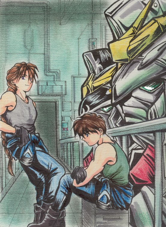 | I wanted to try more traditional watercolor-style coloring. Unfortunately, it's not easy doing it using watercolor pencils...but it was fun to try. Here are progress: 1 2 3 4 5 6 | Heero and Duo in Preventer mission mode! (^_^) It's really piece of cake for them... Outfit/gears are inspired by the movie "Doom". (^o^;) Here is the progress: 1 Skylark wrote fic for it, thanks! | ||||