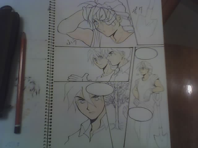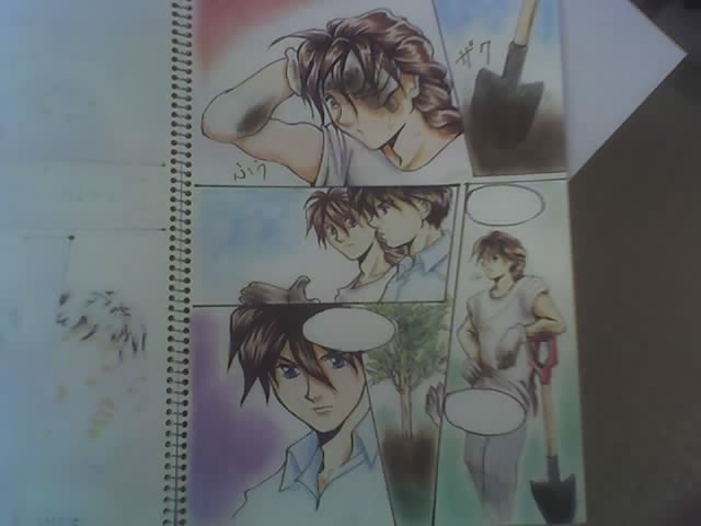 I made my hubby pose for Duo's posture on top panel and bottom right panel. I also had to look up shovel phots online.