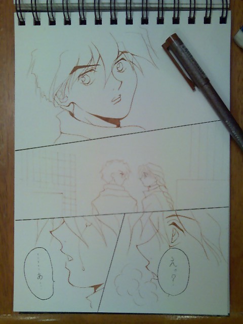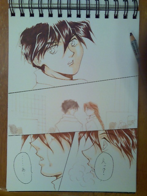 I couldn't decide how to handle the coloring, Copic markers or watercolor pencils, so I decided to mix it up. But coloring small details in some panels are sooo difficult (-_-;) |