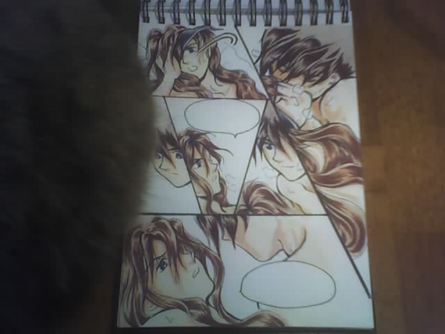 I think this may be the first time I've done hair-down Duo manga. As much fan as is in pencil/ink stage, long wavy hair takes time to color (=_=)