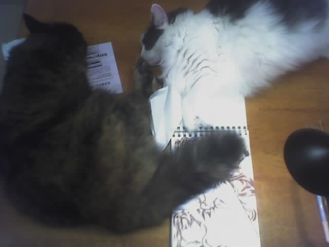 As you see my cats just LOVE laying on my sketchbook (=_=)